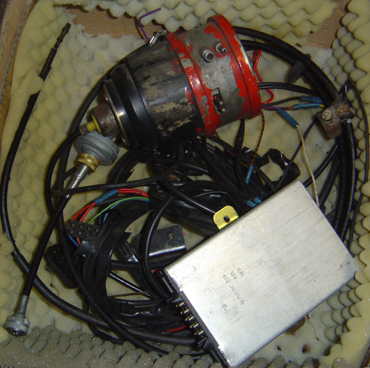 Jeden z tempomatů, co mi přivezl Heky skončil v Citroenu XM, druhý nevím v čem. Etienne asi myslel ten na přiložené fotografii (aspoň jsem našel foťák). Taky žádný zázrak, dávalo se to do VW. Za jedinou výhodu proti tomu, co se tam dává teď, považuji to, že se dá nastavit i rychlost vyšší než 180km/h. Kdyby někdo mohl nafotit jak je to nabastlené na ovládání karburátorů, budu rád.