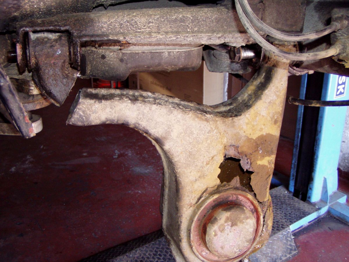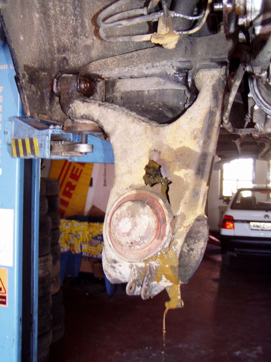 Aj ja som už zažil niečo podobné a bola to viac menej korózia. Všimol som si to na zmene geometrie /odklonu/ kolesa a následná kontrola odhalila niečo podobné ale na inom mieste. Stretol som sa už aj s tým / nie na vlastnej / , že pružina prebehla cez tú hornú časť ramena / aj na tej fotke je vidieť už pokročilé štádium.