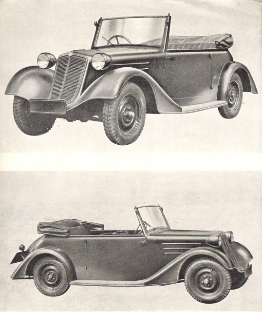 Přesně tak,ta stou bedýnkou je vojenská,ale jde zřejmě jenom o prototip (vzhledem k tvaru zádě).Tak ještě jednou otevřený čtyřmístný vůz v civilním provedení (doufám že mě vydavatel knihy z které jsem to fotil nebude stíhat za porušení autorských práv