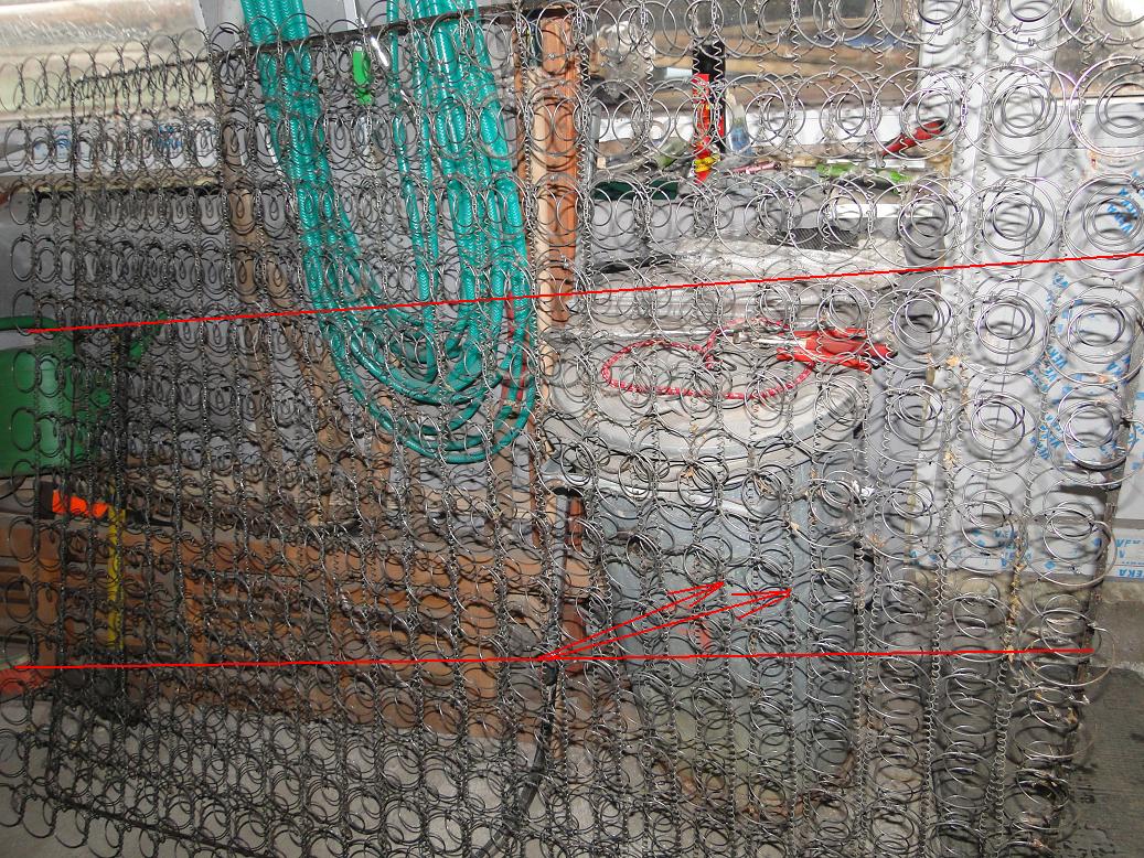 Ďalej výplet tých sedačiek som použil úplne noví aj keď som tiež mal dosť dobrý, ale nechcem aby časom sa trhal, predsa za 70 rokov je ten drôt už oslabený dosť. Použil som jeden matrac z kovošrotu za 5 € nebol vôbec hrdzaví a rozmer mal asi 150 x 200 cm. Bola to zrejme obyč. pružinoví matrac. Pri rozoberaní som postupoval takto: roztrihol som ho na tri časti,( Taká bola potrebná dĺžka) tie tenké pružiny, lebo tie som nato použil a najprv som ich ručne vytáčal, ale keď už som mal zo 4 mozole tak som použil vŕtačku. Do skľúčovadla som uchytil pružinu a v malých otáčkach ju vytočil.Potom som tie pružiny splietol a na potrebnú dĺžku skrátil. Tie veľké pružiny som použil na zadné sedačky, keďže som aj tam mal asi 4 prasknuté a keď som ich rozoberal tak ďalších 5 sa zlomilo. Ostatné boli tak oslabené že keď som ich trochu natiahol ostali natiahnuté, a keď som ich stlačil, boli stlačené. Tak som ich vymenil všetky, nechal som len tie po obvode, lebo tie boli dobré a sú aj menšie. Mám ešte dotaz. Na prednej sedačke som mal malé šruky, ako na foto je šípka, ale videl som že tam majú nity. Načo to slúži? Mysle som si že ak tam majú byť šrubky tak na zaistenie operadiel, aby sa nedali povitiahnuť?