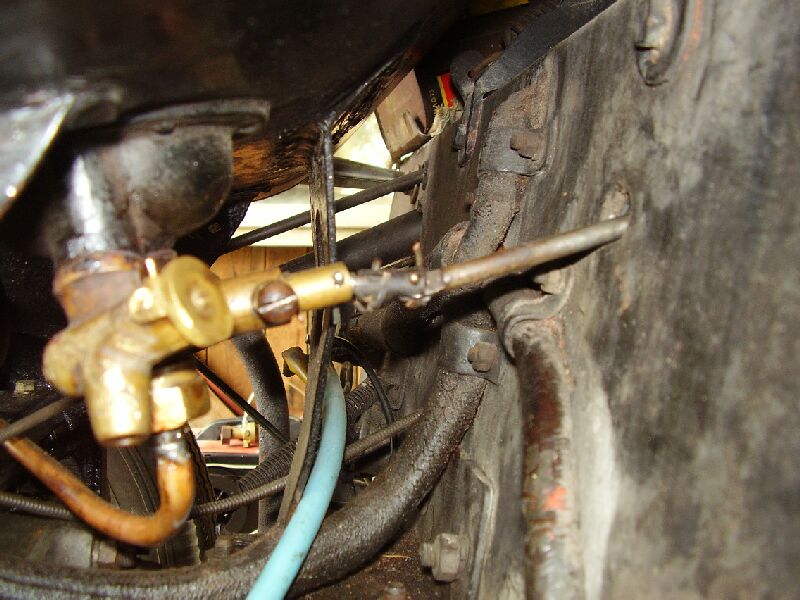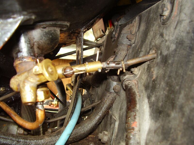 3.Ovládání palivového kohoutu. Táhlo (tyčka) prochází přímo z otvoru v palubce ke kohoutu, nebo jsou tam nějaké kloubky? Já mám zachován u kohoutu (který je myslím originál) jeden kloubek. Kohout se otevírá normálně tahem za páčku směrem k sobě? Je tedy páčka při otevřené poloze vysunuta o cca 1 cm před palubku? A při otevřené rezervě o cca 1,5 cm? Nebo to funguje nějak úplně jinak? Původní součástky se u mého auta nedochovaly.