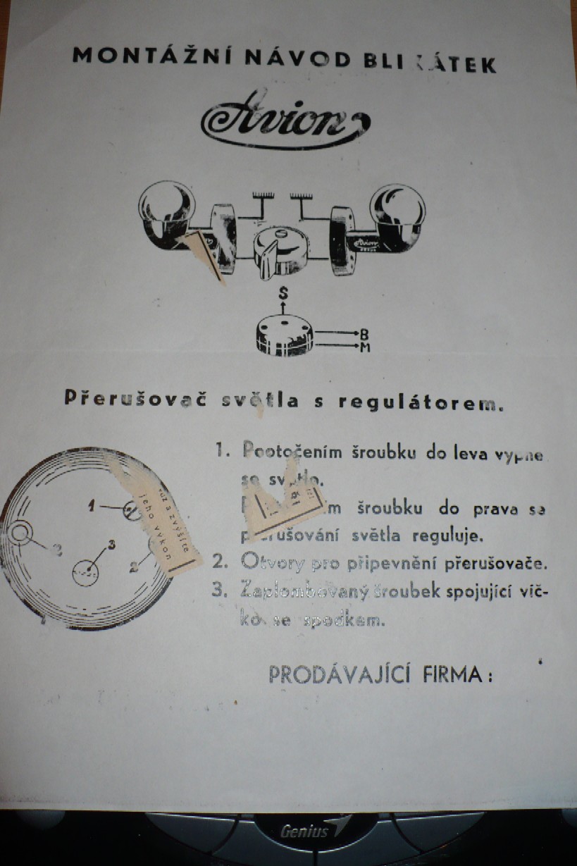 V áčku jsem měl funkční přepínač Avion a z druhé strany palubovky byl přišroubovaný odpojený přerušovač Avion, který někdo nahradil něčím z 60 let. Ten přerušovač mám stále a dokonce jsem ho rozchodil.