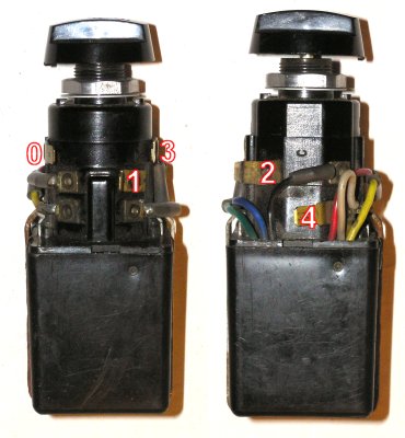 Spodní fotku jsem objevil na netu při pátrání, kam a kdy se zmíněný přepínač montoval. V mém autě je použit originální knoflík (s redukcí z 6mm díry v knoflíku na 4mm hřídelku). Instalace je provedena odborně a přepínač (doteď jsem si myslel, že má jen čtyři polohy) funguje následovně (zleva): cyklovač - vypnuto - pomalu - rychle.