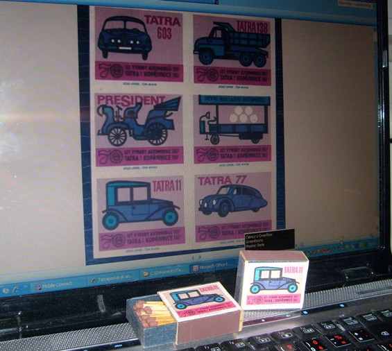 to Miloš: těch modrých zápalkových nálepek je v sérii celkem 6 (doma se mrknu,co tam je za typy),mám je všechny v aršíku (snad bude příležitost naskenovat)..máš koukám solo lipník..většina nálepek se dělala double i v solo sušice..u série nálepek k výročí automobilky mám ještě hnědé provedení..